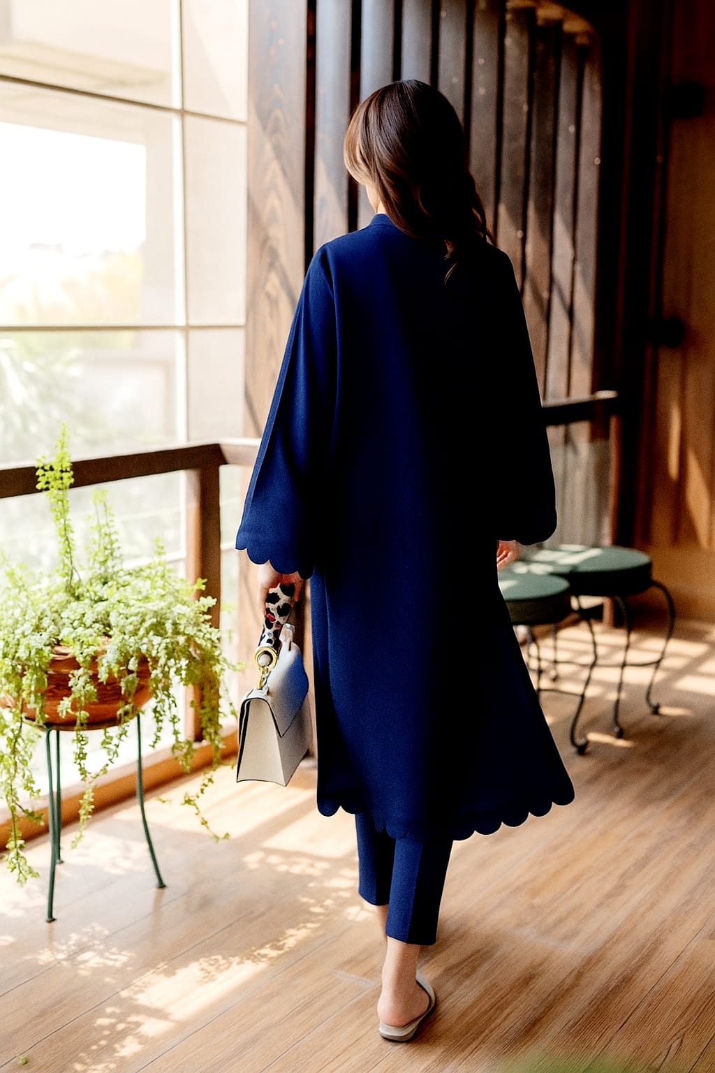 Azure Bloom embodies effortless sophistication and understated charm. This 2-piece set, crafted from premium imported georgette, combines modern tailoring with delicate feminine accents. The scallop detailing on the hem, sleeves, front, and back adds a refined touch, while the soft georgette drape ensures all-day comfort and graceful movement.