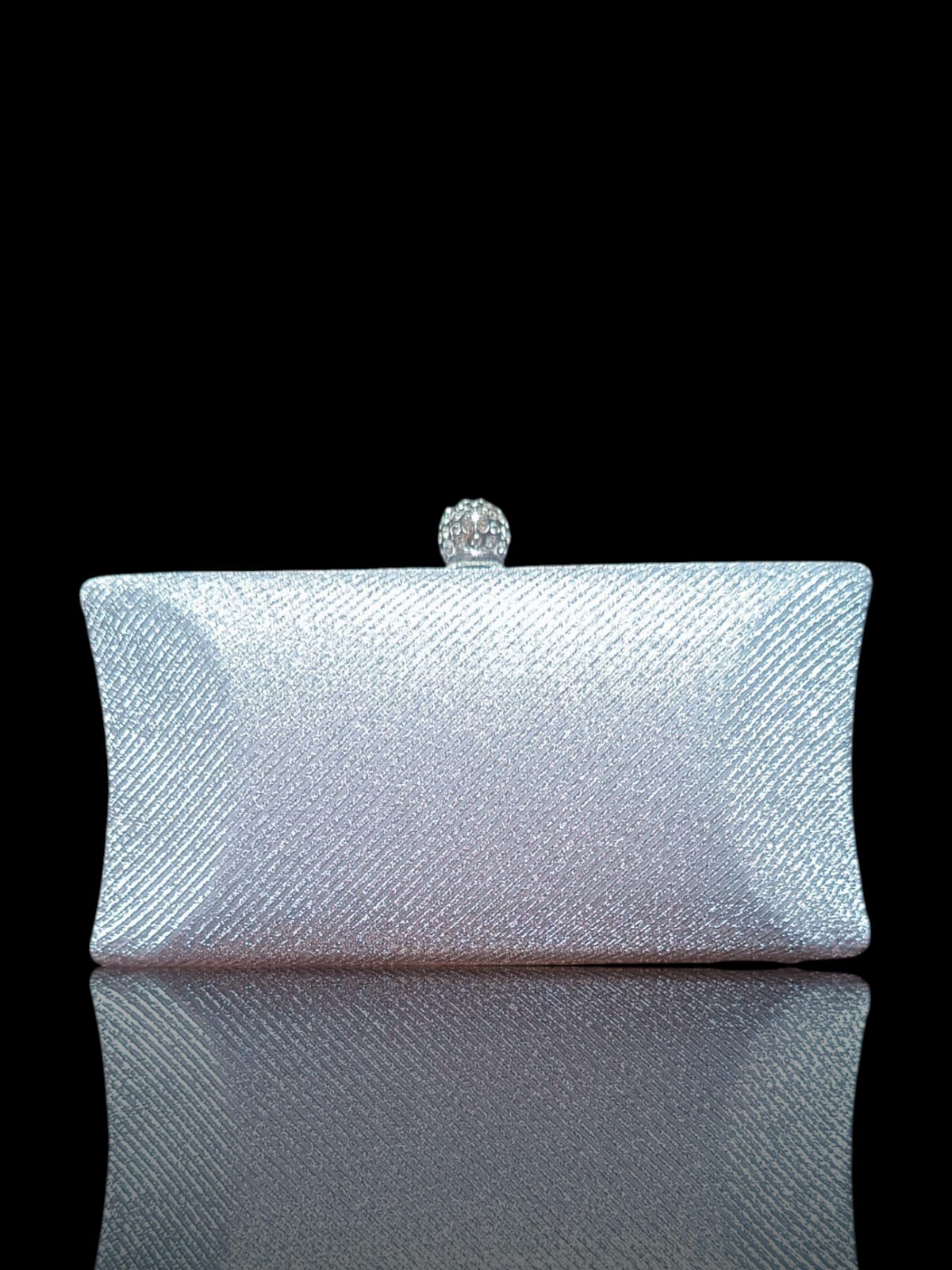 Shimmer in style with the Fajar Silver Metallic Clutch, designed to add an instant touch of glamour to your evening look. Crafted with a sleek metallic finish and adorned with a crystal-studded clasp, this elegant clutch is perfect for weddings, festive events, and formal gatherings.